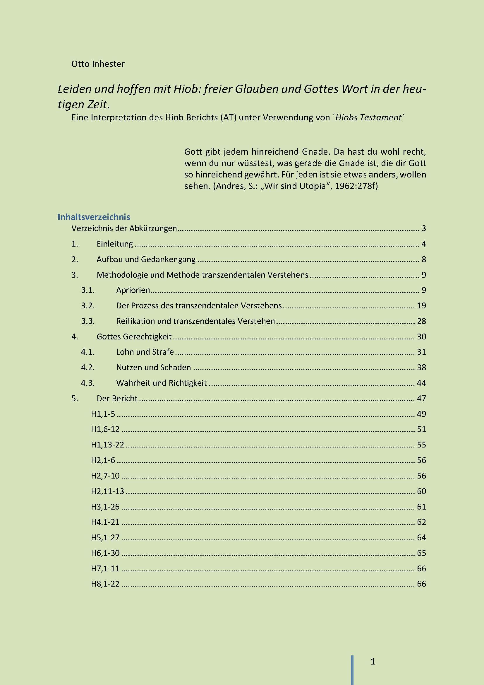 Eine Interpretation des Hiob Berichts (AT) unter Verwendung von ´Hiobs Testament`