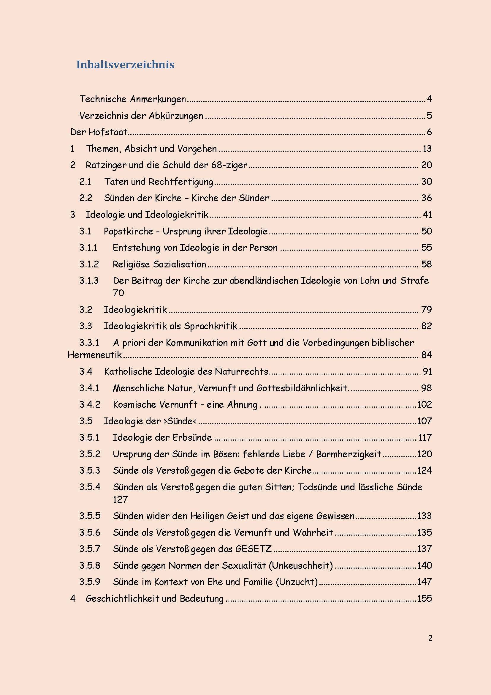 Im zweiten Schritt geht es um die exemplarische Anwendung von Ideologiekritik. Diese setzt ein bei der naturrechtlichen Begründung von Moral und der von Theologen der Denkungsart Ratzingers beschworenen Gefahr des Relativismus. Sie wird dann anhand einiger zentralen Dogmen wie sie im Katechismus niedergelegt sind, weitergeführt und endet mit einem Blick in die frühe Kirchengeschichte (Kapitel 4-5) und der Ideologie der Nachfolge und des Priesteramtes.